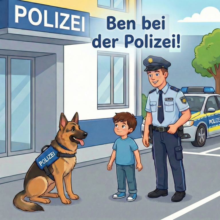 In diesem liebevoll gestalteten Kinderbuch begleitet Ben die Polizei bei ihrer täglichen Arbeit. Gemeinsam mit Polizist Herr Schneider, einer freundlichen Polizistin und dem cleveren Polizeihund Rocco erlebt er spannende, aber ruhige Einsätze.